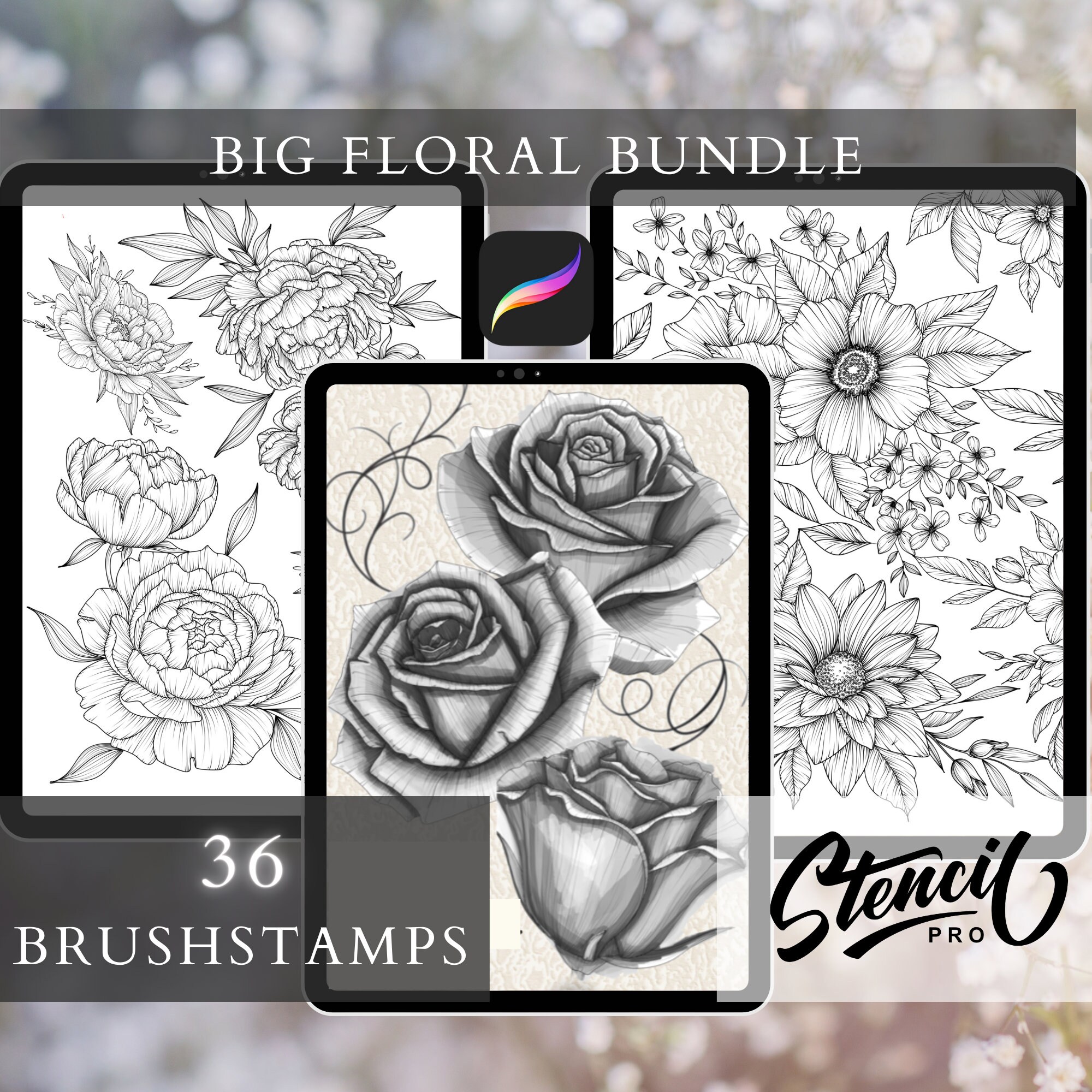 Bundle Flower Brushes Procreate Brush Set Floral Tattoo Etsy Canada