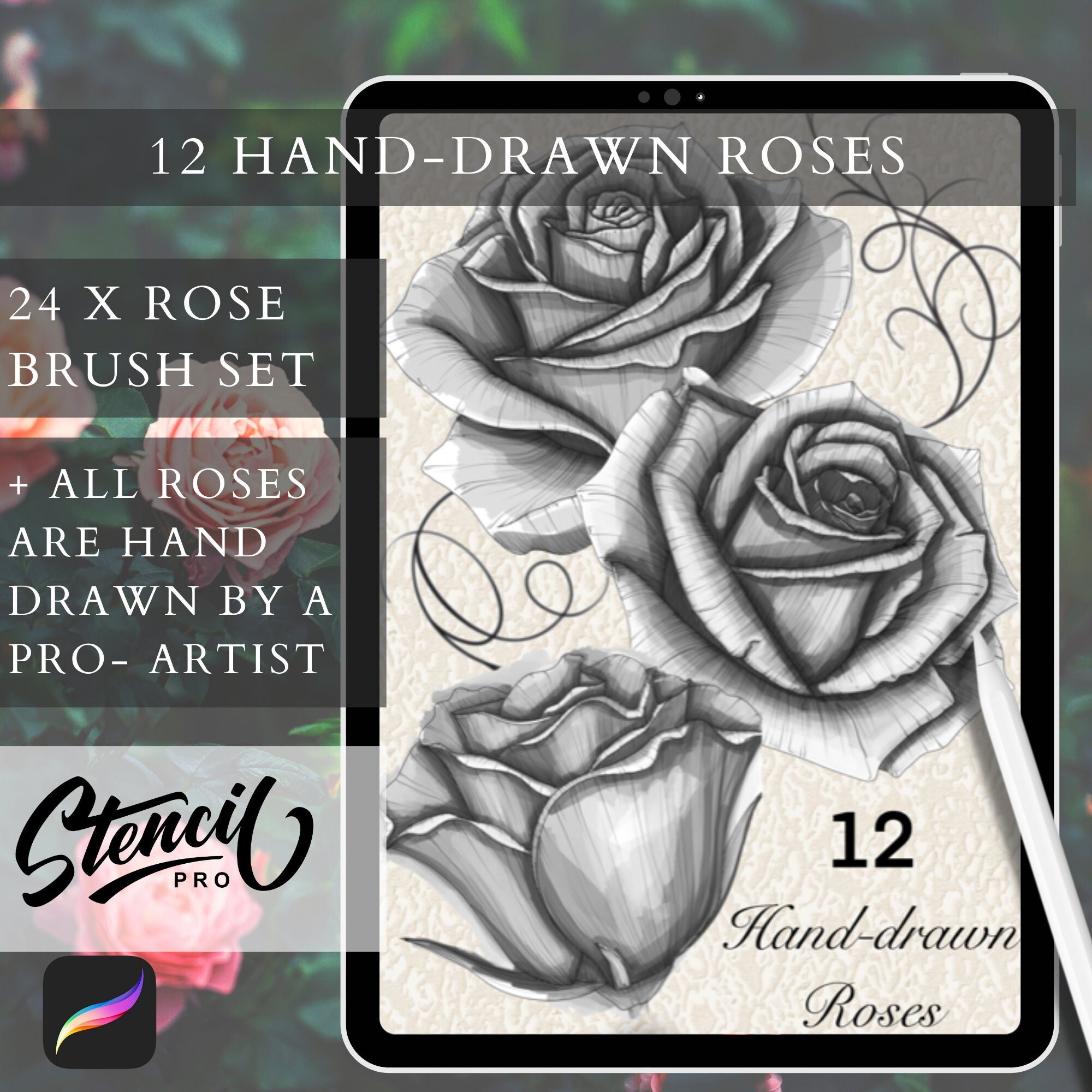 Rose Brushes Procreate Brush Set Roses Tattoo Stamp Brushes Etsy Australia